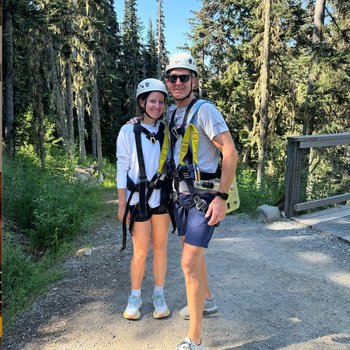 | The Sasquatch Zipline - If you're feeling a little more adventurous, zip trek across the mountain instead! (Mer & Dan Haggerty pictured after just conquering the Sasquatch)