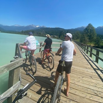 Valley Trail which runs throughout the entirety of Whistler with clear walking/cycling paths around town! (The lads - Lawrence Webb, Elliot Webb, Dan Haggerty pictured next to Green Lake)