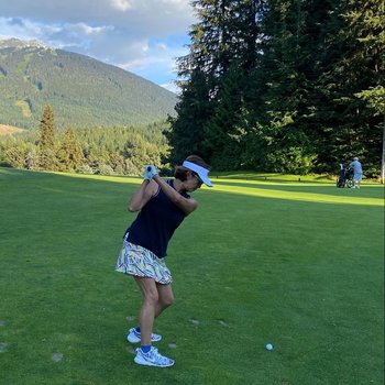 Whistler is Canada's premier golf destination allowing you to challenge yourself while enjoying the mountain views & dodging some bears! (V Webb modeling)